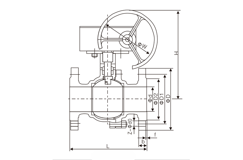 DN | NPS | L | d | D | D1 | D2 | b | f | z-Φd0 | W | H | |||