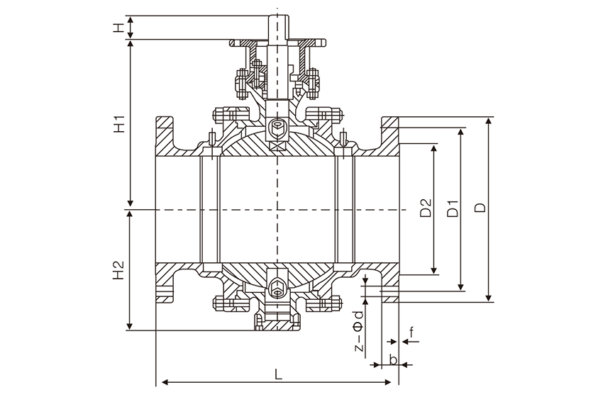 الهيكل الثابت: يتم تثبيت الكرة بواسطة محامل علوية وسفلية لتقليل عزم دوران التشغيل، ومناسب لخطوط الأنابيب ذات الضغط العالي ذات القطر الكبير (مثل الفئة 150~1500)؛